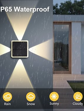 4 unidades de luces solares de proyección de pared de metal hueco impermeables para exteriores, jardín, patio, césped, valla, escaleras, camino, terraza, porche, villa, iluminación ambiental