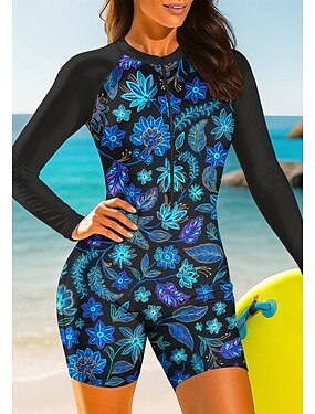 Mujer Medio Camiseta Protección Solar Surf Traje de baño Bañador deportivo Floral Cachemir Folk Acolchado extraíble Cremallera delantera Boyleg Protección solar UV UPF50+ Protección UV Manga Larga