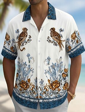Hombre Pájaro Estampado Floral Flores tropicales Camisa Camisa Cubana camisa hawaiana Manga Corta Hawaiano Vacaciones Festivos Ropa de playa Verano Primavera Camisa con cuello de campamento Impresión