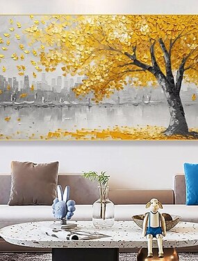 Pintura al óleo de árbol de oro 3d, pintura al óleo de árbol de oro hecha a mano sobre lienzo, pintura al óleo de árbol amarillo dorado con textura abstracta grande, pintura al óleo de árbol de vida,