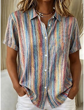 Mujer Camisa Graphic Geométrico A Rayas Vintage Tropical Elegante Manga Corta Cuello Camisero Tops regulares Diario Azul Piscina Rosa Morado Naranja Gris Verano Primavera