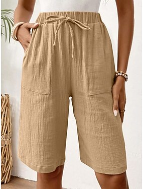 Mujer Lino de algodón sintético Pantalones Capri pantalones Ropa de calle Casual Medio corto Cintura Media Plano Bolsillo Diseño de cordón elástico Confortable Al Aire Libre Exterior Vacaciones