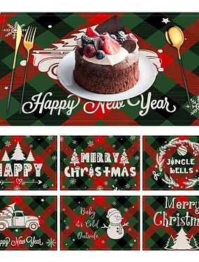 6 copos de nieve rojos navideños &Manteles individuales resistentes al calor con diseño de muñeco de nieve y árbol de Navidad, manteles cuadrados de lino para decoración de mesas de comedor, cocina o