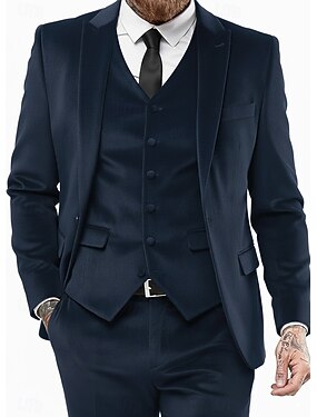 De los hombres Trajes de fiesta Casual Boda Negro Azul Oscuro Otoño invierno Traje Solapa de Muesca Formal Color sólido A Medida Juego de 3 piezas Recto 2 botones