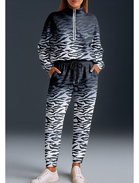 Mujer Sudadera Geométrico Casual Manga Larga Media cremallera Tops regulares Casual Uso Diario Deportes Azul Piscina Morado Verde Trébol Otoño Invierno