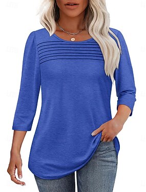 Mujer Blusa Frunce Retazos Plano Vintage Elegante Moderno Manga 3/4 Cuello Barco Tops largos Diario Festivos Noche Azul vaquero Negro Blanco Rosa Rojo Primavera Otoño Invierno