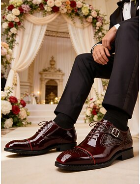 Zapatos de vestir para hombre: zapatos de charol bicolor burdeos con diseño de cordones para fiestas de baile y ocasiones especiales.