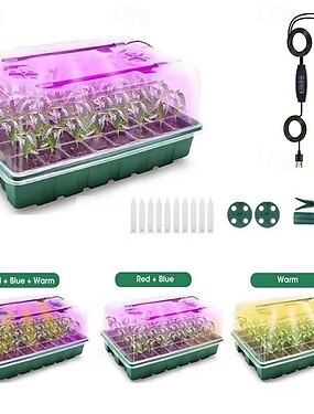 Bandeja de inicio de semillas con luz de cultivo, kit de inicio de semillas con domo de humedad, bandeja de semillas de brillo ajustable con temporizador inteligente, 3 modos, 4 tiempos, kit de