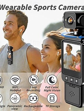 Cámara corporal con grabación de audio y video, lente giratoria de 180°, cámara corporal de 1080p de 2 horas, cámara corporal con visión nocturna, viajes personales, caminatas y ejercicios.