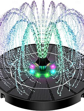 Fuente de baño para pájaros alimentada por energía solar, bomba de fuente solar LED RGB con luces LED de colores para jardín, estanque pequeño, piscina exterior, peces