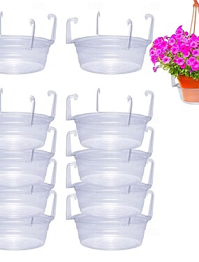 10 cestas colgantes redondas de plástico transparente con bandejas de goteo, bandejas para plantas colgantes con ganchos incorporados y recolectores de agua, aptas para uso en interiores y exteriores,