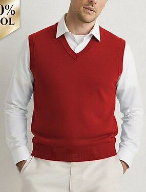 Hombre Chaleco suéter Vestido Suéter Sueter de lana Suéter de punto Estriado Tejer De Punto Color sólido Cuello Barco Mantiene abrigado Contemporáneo moderno Trabajo Ropa Cotidiana Ropa Sin Mangas
