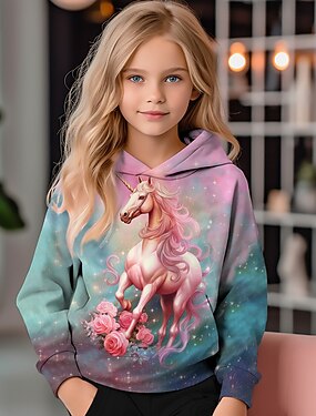 chica 3d unicornio sudadera con capucha jersey manga larga 3d estampado otoño invierno activo moda lindo poliéster niños 3-12 años al aire libre casual diario ajuste regular