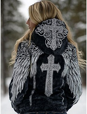 Sudadera con capucha boho vintage de impresión 3D para mujer sudadera con parches florales cierre de cremallera gráfica tribal moda casual de manga larga con capucha tops regulares uso diario bolsa