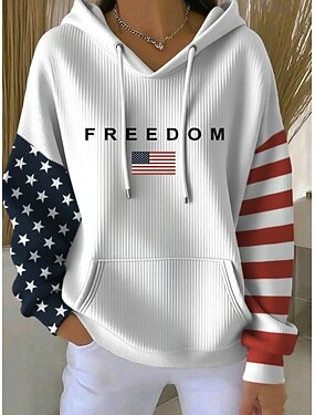 Día de la Independencia Sudadera con Capucha de Mujeres Patrióticas Gráfica Letra Casual Manga Larga Con Capucha Tops Regulares Ropa Diaria Casual Deportes Blanco Primavera Otoño