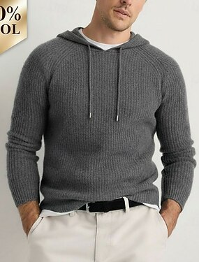 Suéter de cachemira de pura lana premium para hombre, jersey de punto clásico con capucha y cordón, suave, cálido y transpirable.