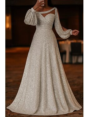 Corte A Cola de Corte Hasta el Suelo Trajes de gala Vestidos de noche Corte Cenicienta Vestimenta formal Elegante Reluciente Estilo de Celebridad Manga Larga Escote Corazón Fiesta de jardin Boda