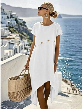 Mujer Vestido Midi Vestido informal Moda Moderno Exterior Vacaciones Noche Holgado Plano Manga Corta Cuello Barco Blanco Vino Azul Real Marrón Verano Primavera