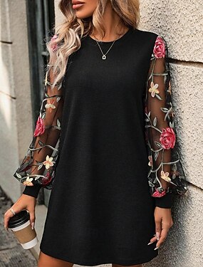 Mujer Mini vestido Vestido informal Vestido estilo camiseta Vestido Estampado Moderno Diario Exterior Vacaciones Ajuste regular Floral Manga Larga Cuello Barco Azul Piscina Negro Albaricoque Verano