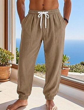 Hombre Pantalón Jogger Pantalones de lino Pantalones Pantalones de verano Pantalones anchos Correa Cintura elástica Plano Comodidad Ligero Longitud total Diario Playa Festivos Vacaciones Moda