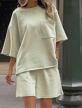 Mujer Tracksuit Sudadera tipo jersey Pantalones cortos deportivos Bolsillo Color sólido Trajes de Yoga Verano Primavera Blanco Verde Gimnasio Entrenamiento Corriendo Alta cintura Resistente al Viento
