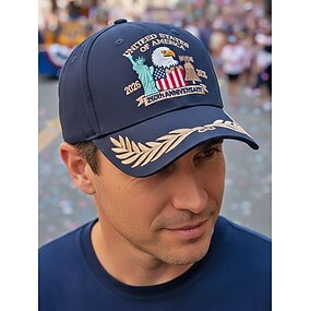 Gorra de béisbol de poliéster para hombre con águila bordada y bandera estadounidense, gorra patriótica ajustable multicolor para el 250 aniversario de EE. UU., Día de la Independencia, uso casual, viajes y vacaciones.
