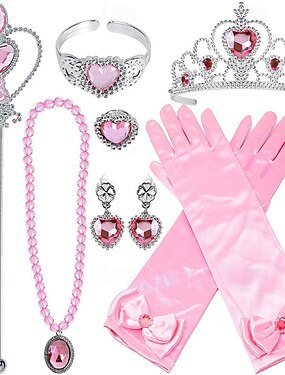 Bruja mágica fantasía cuento de hadas buena bruja 7 piezas niños niñas guantes accesorios para el cabello conjunto de joyas princesa dulce fiesta al aire libre corazón rosa
