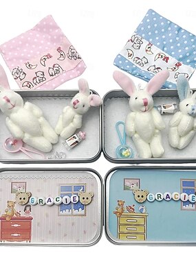 Conejito de Pascua, momia de peluche y conejitos bebés en una lata de bolsillo, juego de rol, regalo para hermanos, regalo de Pascua, mini casa de peluche para conejito en una caja de lata, linda mamá