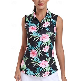 Mujer Flores Camiseta de tenis Sin Mangas Estampado UPF50+ Secado rápido Tenis Golf Bádminton Cuello con cremallera Camiseta Rosa Verde Ropa de tenis