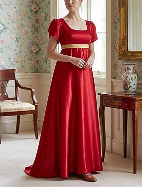 Siglo 19 Período de regencia Hasta el Tobillo Vestidos Mangas cortas Princesas Dama Aristócrata Color sólido Disfraz Mujer Real Víspera de Todos los Santos Carnaval Fiesta de Té LARP Feria Ren Adulto