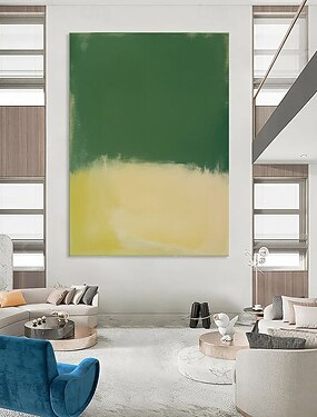 Regalo de Navidad: pinturas abstractas hechas a mano en tonos verde y beige, pintura de montaña, pinturas de paisaje verde, arte mural, gran panorama minimalista de valle, pintura al óleo