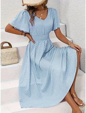Mujer Vestido Midi Vestido informal Vestido Estampado Elegante Moda Moderno Exterior Vacaciones Noche Ajuste regular A Lunares Manga Corta Escote en Pico Azul Piscina Negro Amarillo Rosa Verano