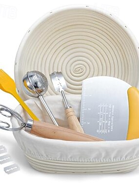 El kit de inicio de masa madre incluye un molde redondo de 9 pulgadas. &Banneton ovalado de 25 cm (10 pulgadas) para fermentar pan, con cuchilla para pan, rascador de masa, batidor de masa, pincel de