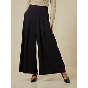 Mujer Fresco Pantalones Elegante Longitud total Media cintura Plano Cintura elástica Microelástico Diario Oficina Formal Negro Verano Primavera Otoño Holgado