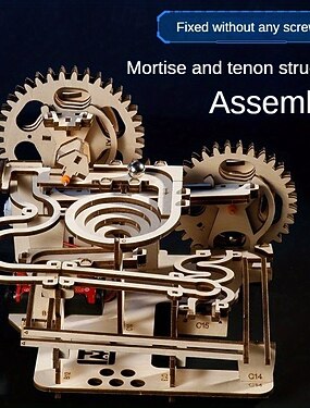 Rompecabezas de madera 3D - Pelotas mecánicas de pista DIY Rompecabezas educativo para adultos Regalo de Navidad caqui