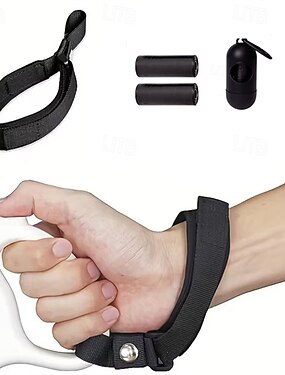 Correa de muñeca ajustable con manos libres, fabricada en neopreno suave y cómodo. Diseñada para usarse con correas retráctiles para perros e incluye un kit portátil para recoger excrementos.