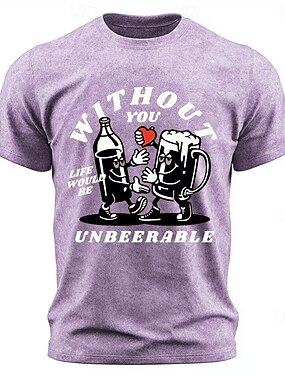 Camiseta de hombre sin ti la vida sería insoportable, lavado ácido, divertida, juego de palabras con cerveza, retro, dibujos animados, manga corta, corte regular, cuello redondo, fiesta, bar, ropa de