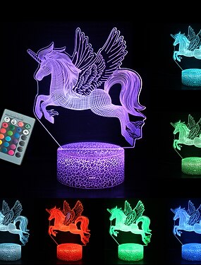 Lámpara de ilusión led con luz nocturna de unicornio 3d con control remoto 16 colores 4 modos de flash El mejor regalo de cumpleaños de Navidad para niñas