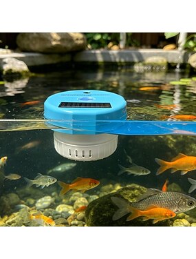 Dispensador flotante de cloro solar para piscinas, sin luces, impermeable, con flujo ajustable y pastillas de cloro.