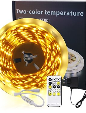 1 juego de tira LED de 3/5/10 m, doble temperatura de color, 8 mm, 24 V, 2835, 120 leds/ cinta LED flexible superbrillante