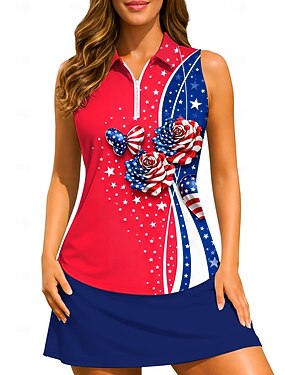 250 aniversario de Estados Unidos Día de la Independencia Mujer Bandera Camisa deportiva Camisas de polo Camiseta de tenis Sin Mangas Cremallera Floral UPF50+ Resistente a los rayos UV Alta