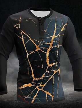 Hombre Graphic Patrón de mármol Henley Shirt Manga Larga Moda Estilo lindo Diario Casual Festivos Noche Primavera & Otoño Todas las Temporadas Negro Henley Camiseta Henley