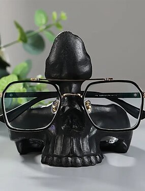 Porta gafas de calavera de resina, soporte gótico para gafas de escritorio, adorno de almacenamiento de resina, decoración de oficina en casa, figura artesanal