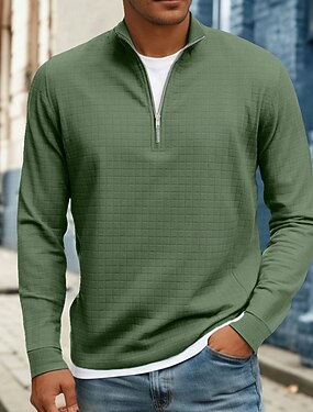 Hombre Camiseta con diseño de gofre Camiseta Camisa henley gofrada Manga Larga Cuello de polo Pull-over Cremallera de un cuarto Otoño Otoño invierno Color sólido Con Texturas Tradicional / Retro