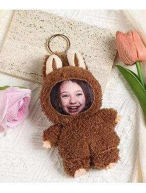 Llavero de peluche personalizado con cara divertida, llavero de conejito de Pascua con foto personalizada, regalo con orejas de conejo, dije para bolso suave, accesorio para mochila, regalo para niños, novia, damas de honor.