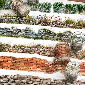 6 rollos/bolsa de cinta adhesiva para paisajismo vegetal, material para mascotas, flores silvestres verdes, serie de pared, cuaderno, álbum de recortes, carcasa de teléfono móvil, marco de fotos,