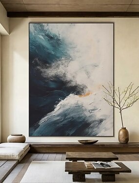 Pintura al óleo hecha a mano, lienzo, arte de pared, decoración, estilo wabi-sabi, simple, abstracto para decoración del hogar, marco estirado, pintura colgante/pintura enrollada sin marco, sin