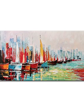 Pinturas al óleo de paisaje de barco abstracto hechas a mano de Mintura sobre lienzo, decoración de pared, imágenes modernas para decoración del hogar, pintura enrollada sin marco y sin estirar.