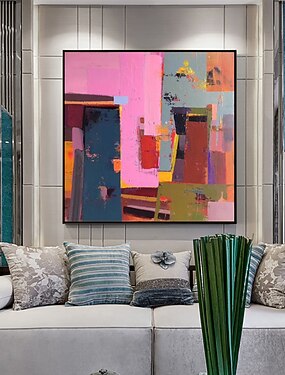 Pintura al óleo pintada a mano hecha a mano, pintura abstracta moderna colorida para pared, decoración del hogar, lienzo enrollado sin marco sin estirar