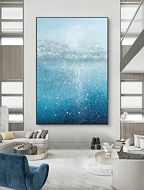 Hecho a mano pintado a mano pintura al óleo arte de la pared abstracto moderno minimalista azul océano pinturas decoración del hogar lienzo enrollado sin marco sin estirar